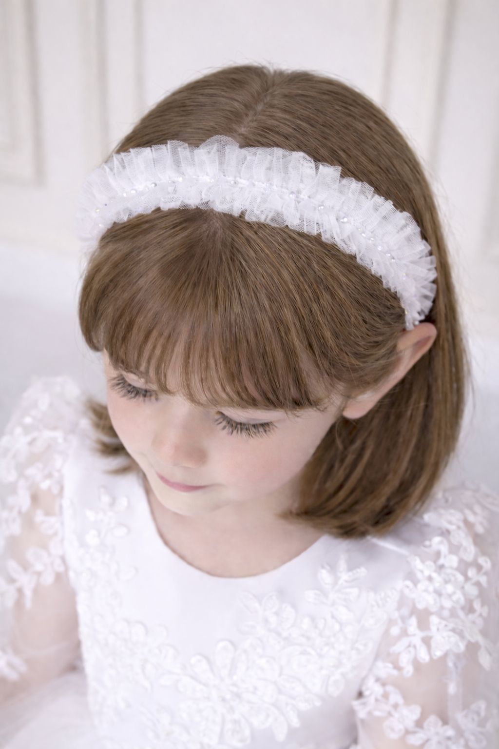 Ozdoba do vlasov pre malú princeznú tvorená tylom, saténom a perličkami.