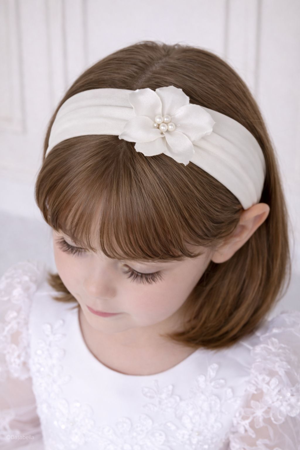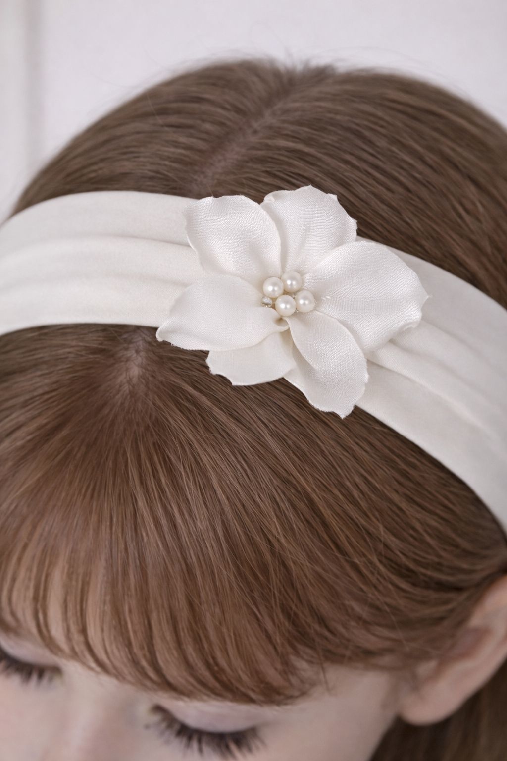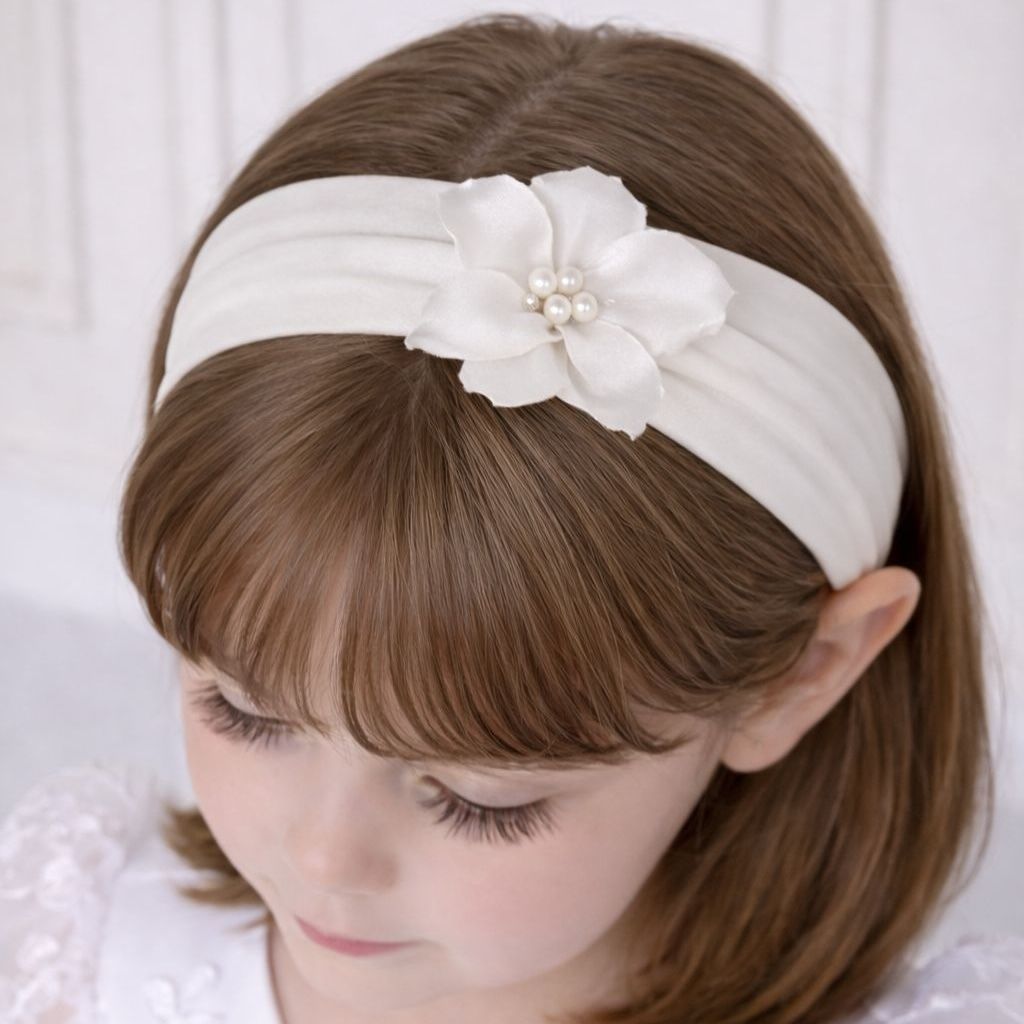 Ozdoba do vlasov pre malú princeznú tvorená tylom, saténom a perličkami.
