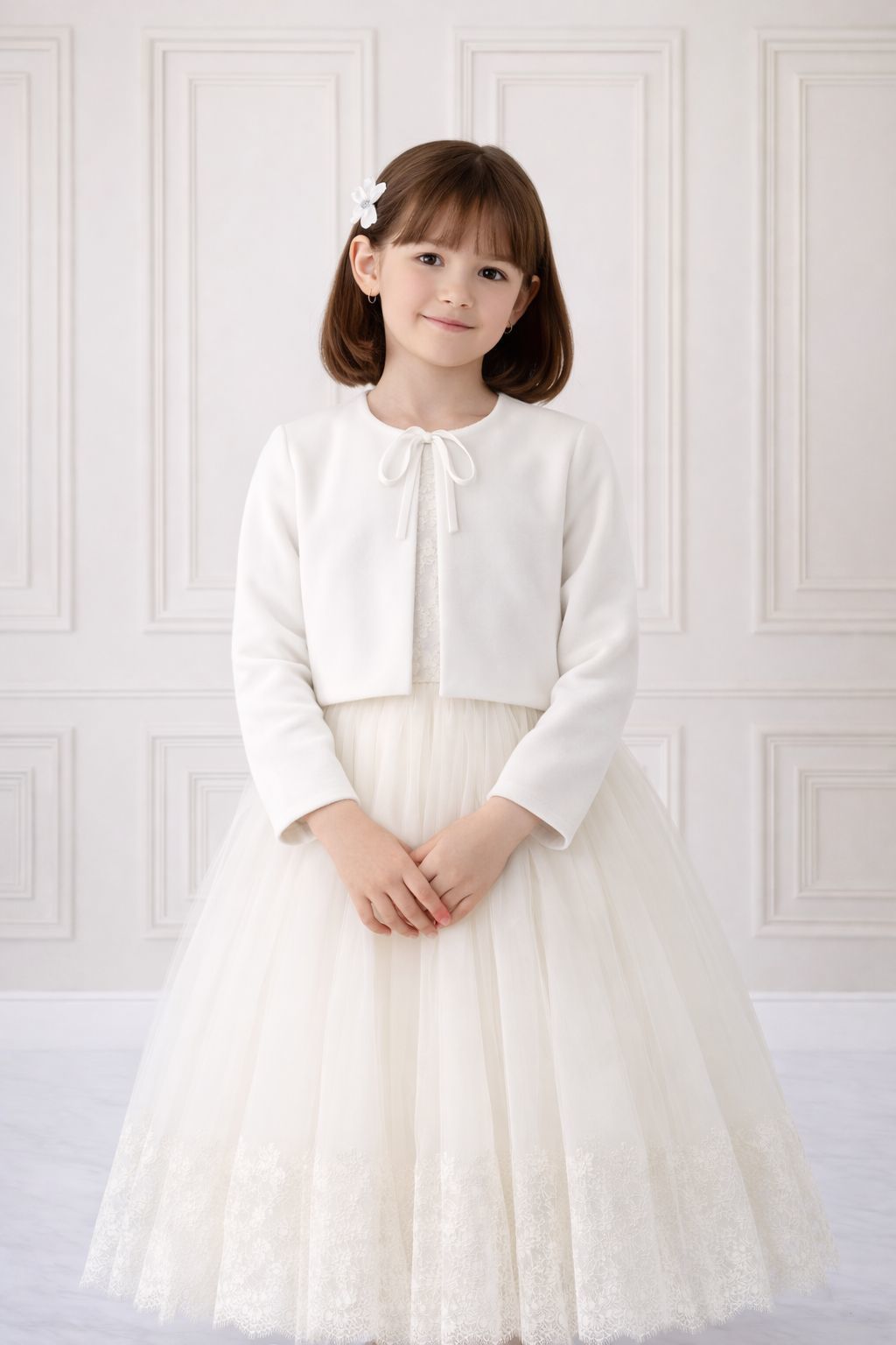 Tento štýlový doplnok je tou správnou bodkou, ktorá udrží vašu malú princeznú v teple a zároveň dodá jej slávnostnému outfitu nádych skutočnej elegancie. Detské bolerko je navrhnuté tak, aby dokonale ladilo so šatami. Je to praktický a zároveň krásny kúsok, ktorý využijete nielen na prvom svätom prijímaní, ale aj na svadbách či iných rodinných oslavách.
