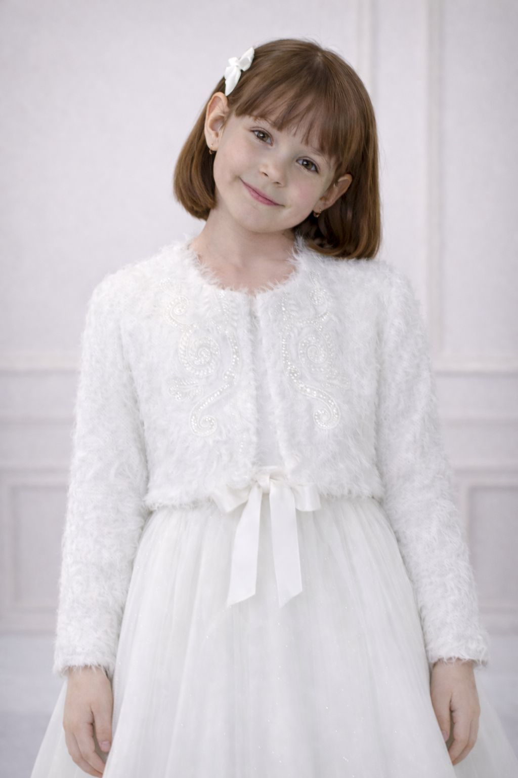 Tento štýlový doplnok je tou správnou bodkou, ktorá udrží vašu malú princeznú v teple a zároveň dodá jej slávnostnému outfitu nádych skutočnej elegancie. Detské bolerko je navrhnuté tak, aby dokonale ladilo so šatami. Je to praktický a zároveň krásny kúsok, ktorý využijete nielen na prvom svätom prijímaní, ale aj na svadbách či iných rodinných oslavách.