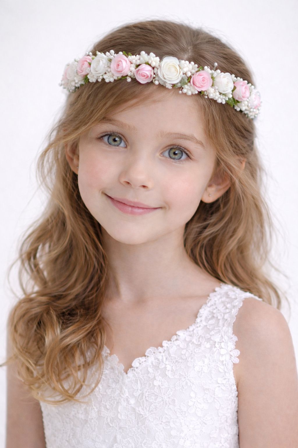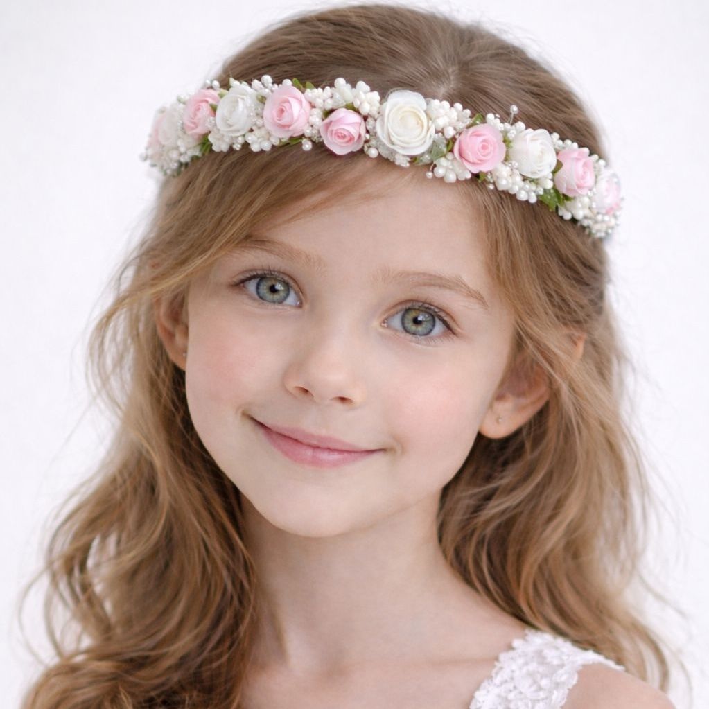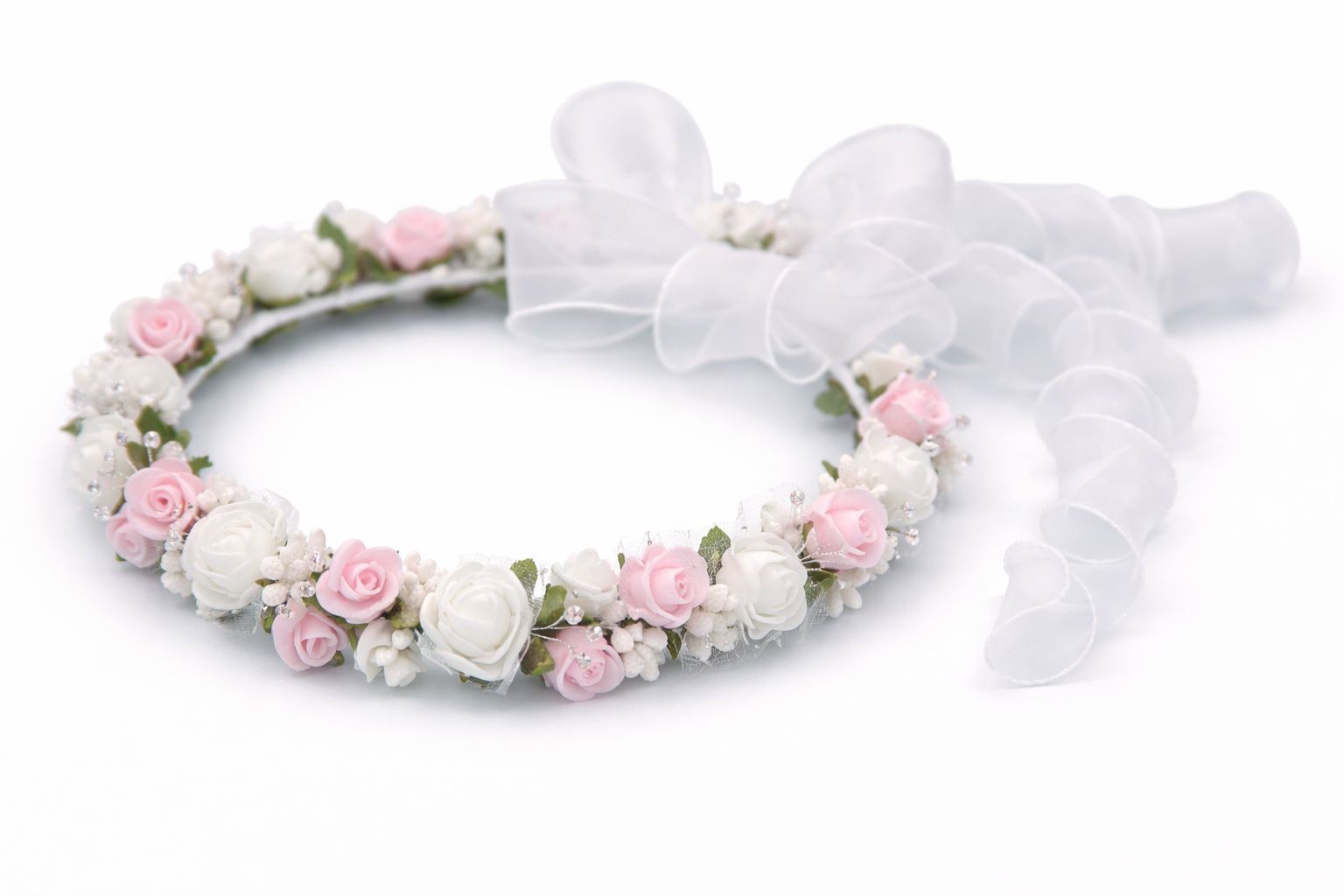 Ozdoba do vlasov pre malú princeznú tvorená tylom, saténom a perličkami.