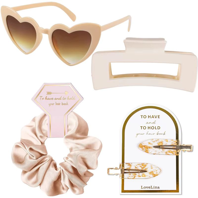 Obsah sady: slnečné okuliare, štipec do vlasov, scrunchie gumička, špirálová gumička, 2 ks sponiek, maska na spanie.