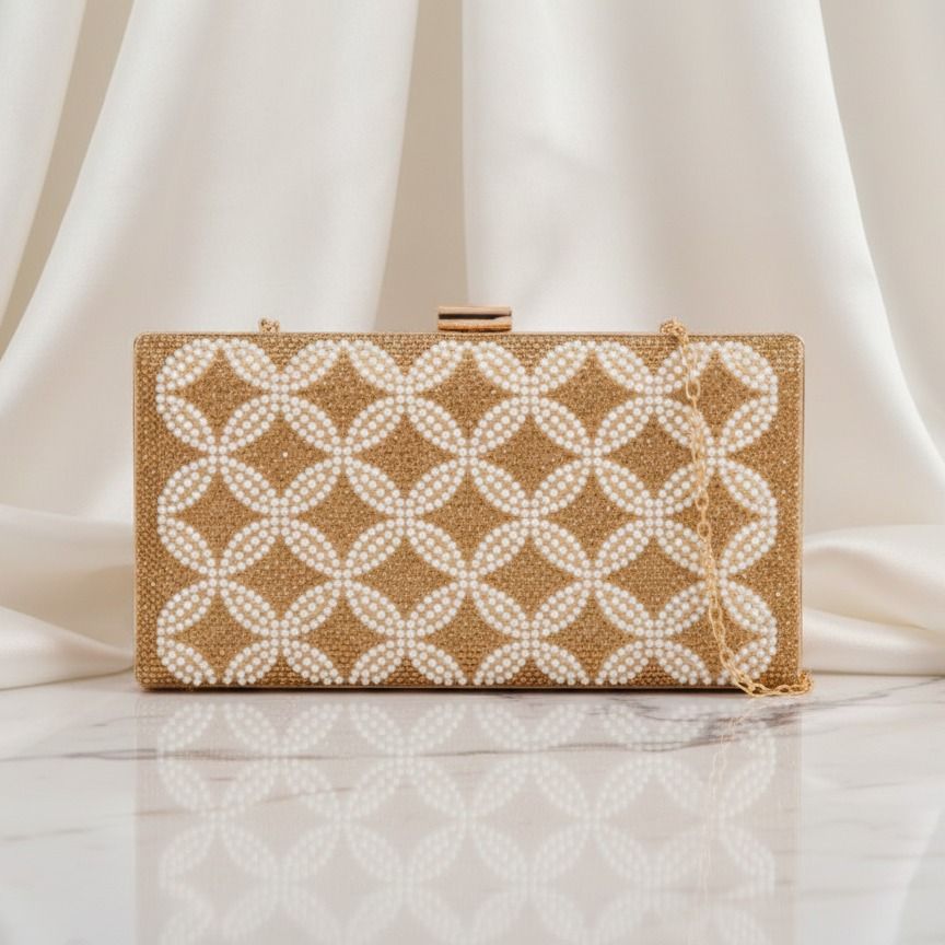 Úvod SPOLOČENSKÉ KABELKYSpoločenská kabelka clutch s perličkami zlatá