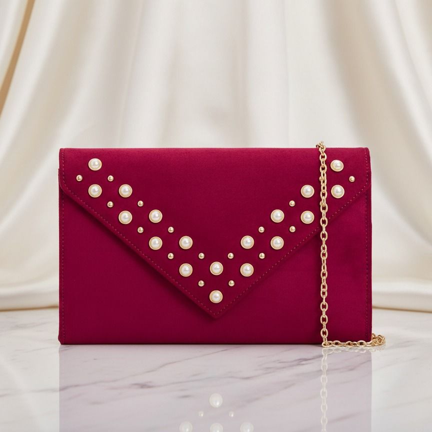 Spoločenská kabelka s perličkami burgundy