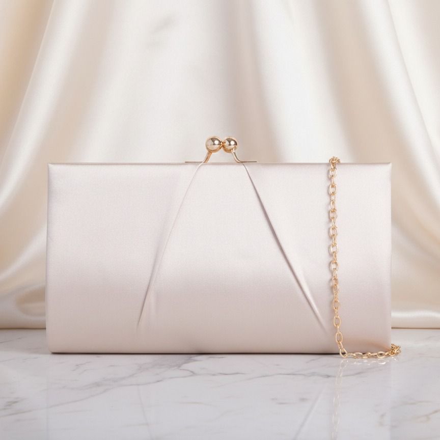 Spoločenská kabelka saténová béžová 2