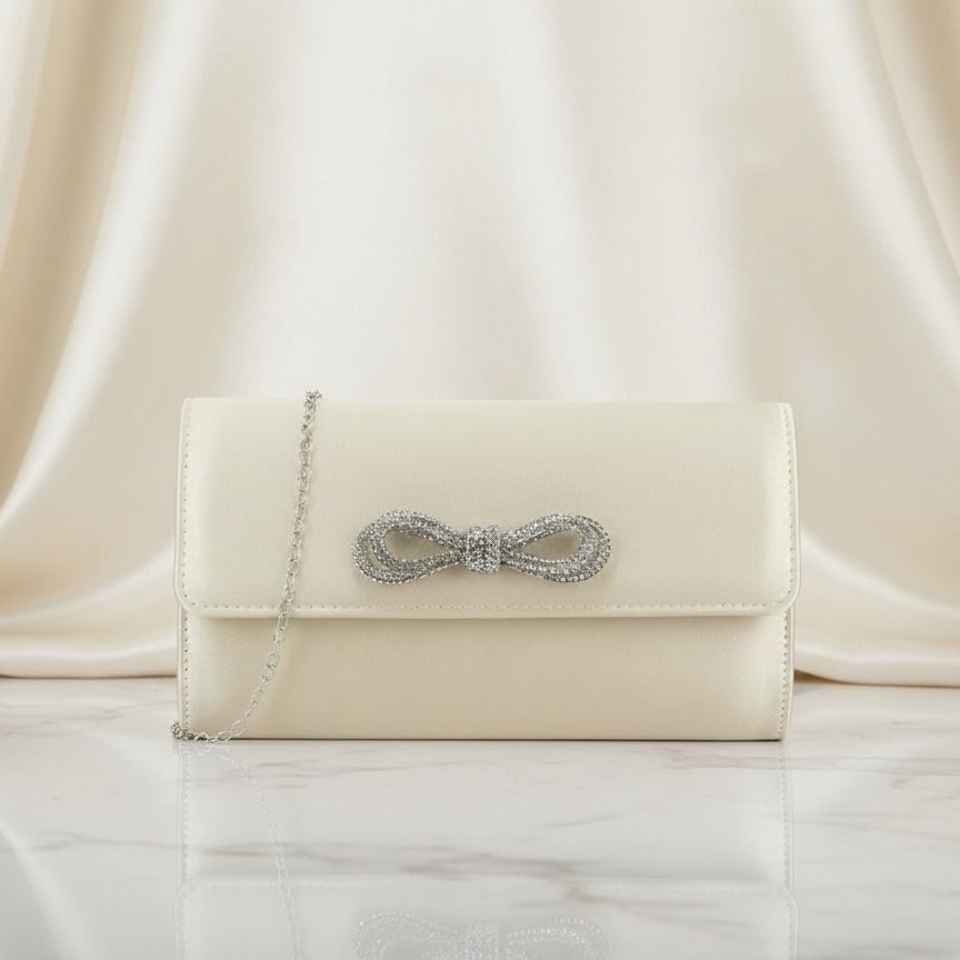 Spoločenská kabelka saténová s masľou ivory