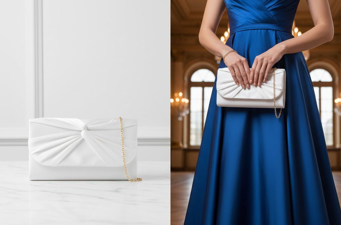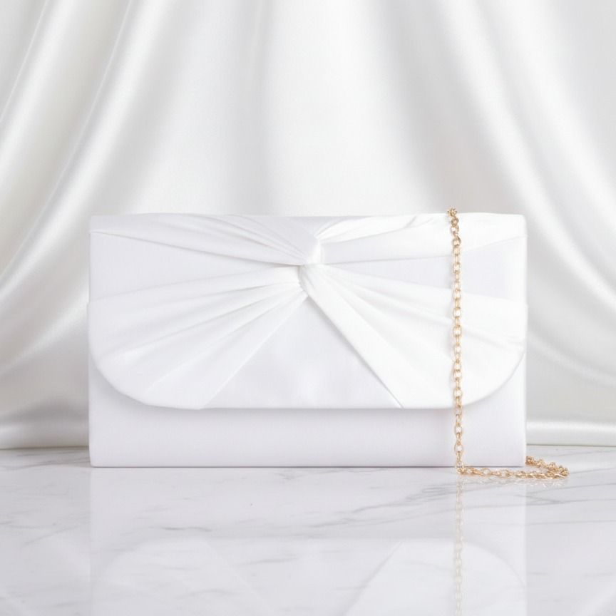 Spoločenská kabelka saténová s uzlom biela