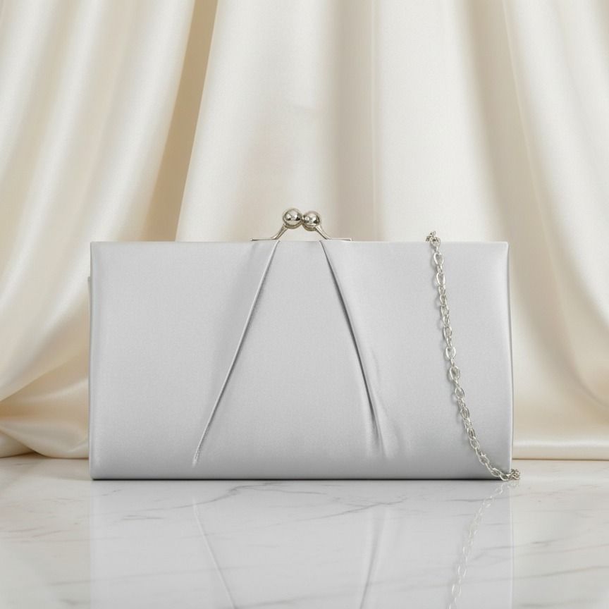 Spoločenská kabelka saténová strieborná 2