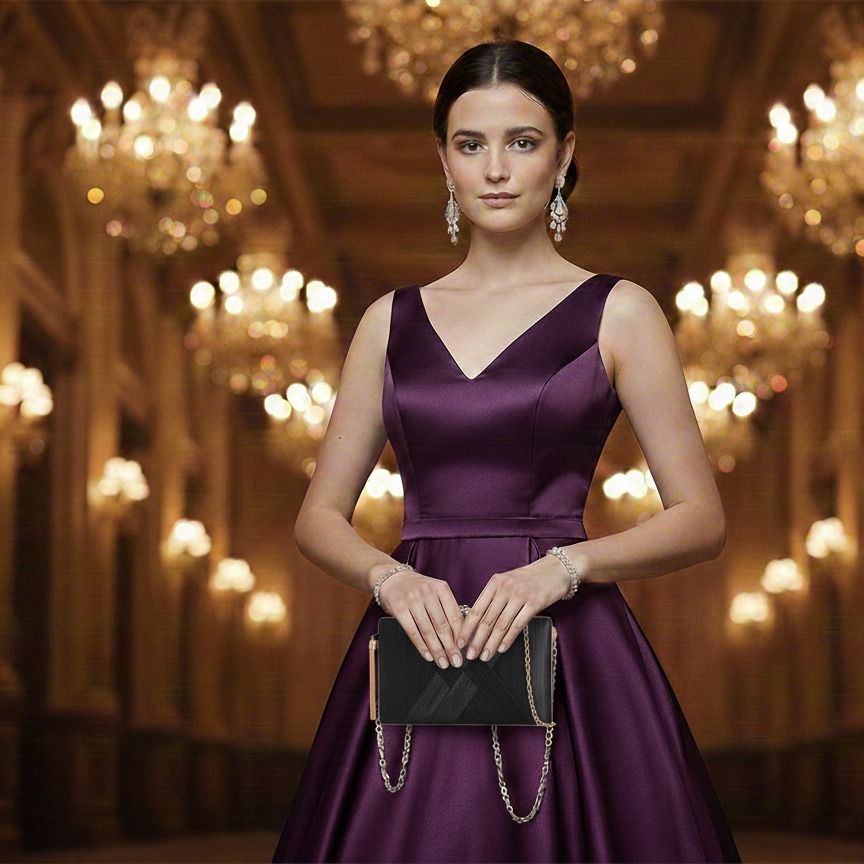 Táto elegantná spoločenská kabelka je dokonalým doplnkom, ktorý vkusne podčiarkne vašu večernú róbu. Vďaka svojmu nadčasovému dizajnu a praktickému vnútornému priestoru bezpečne ukryje všetky vaše drobnosti, zatiaľ čo vy budete hviezdou každého plesu či oslavy.