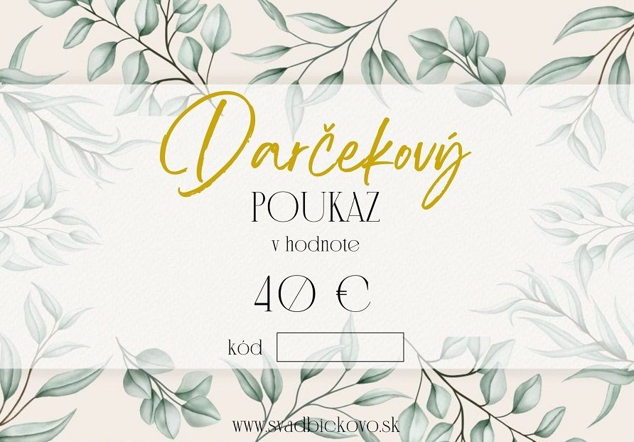 Darčekový poukaz v hodnote 40 €. Ide o skvelý darček pre ženícha a nevestu.