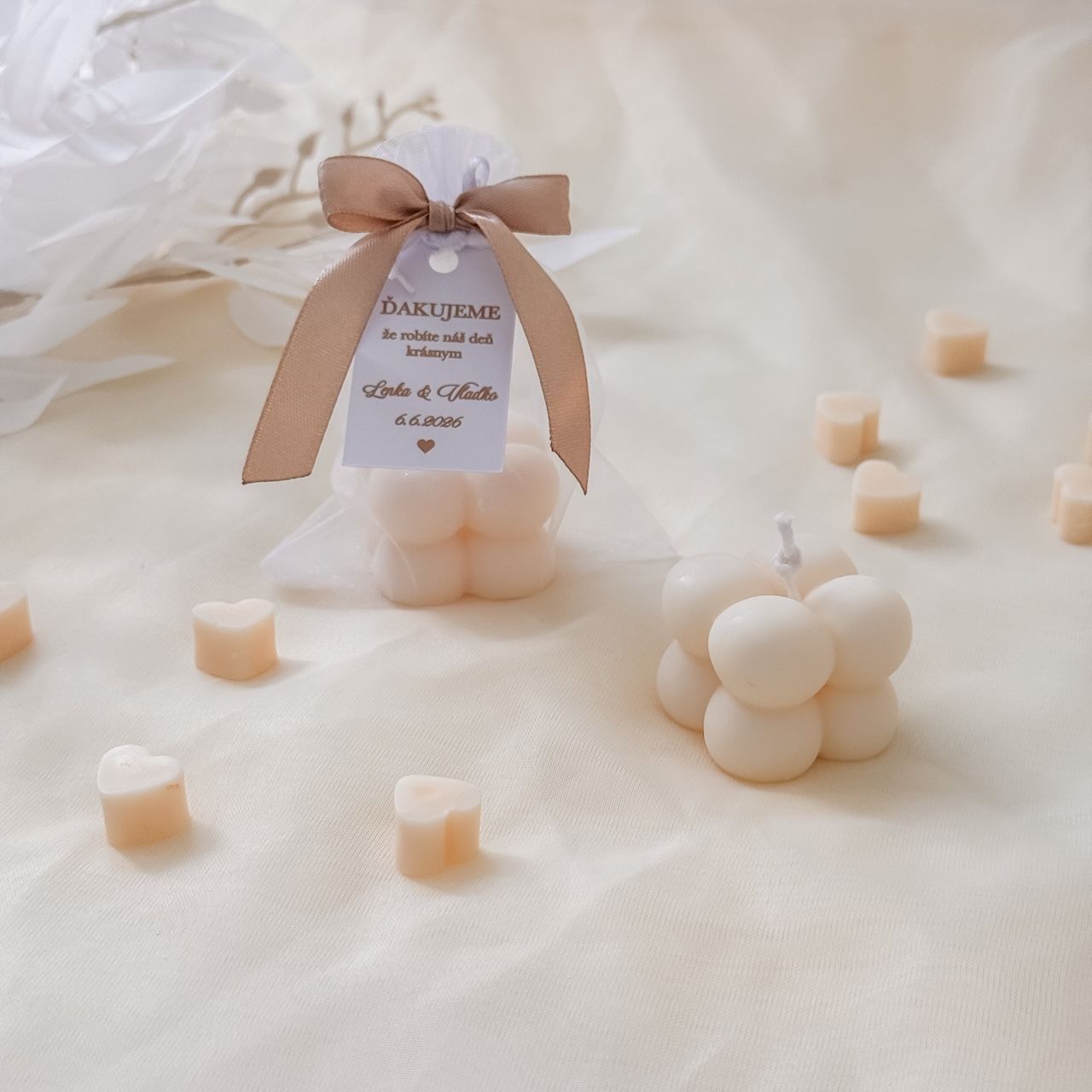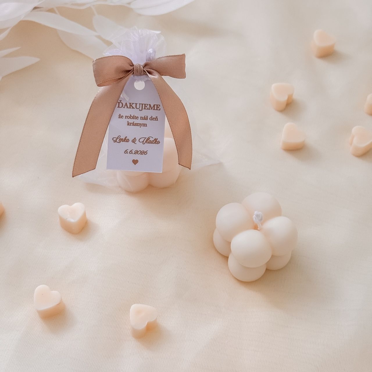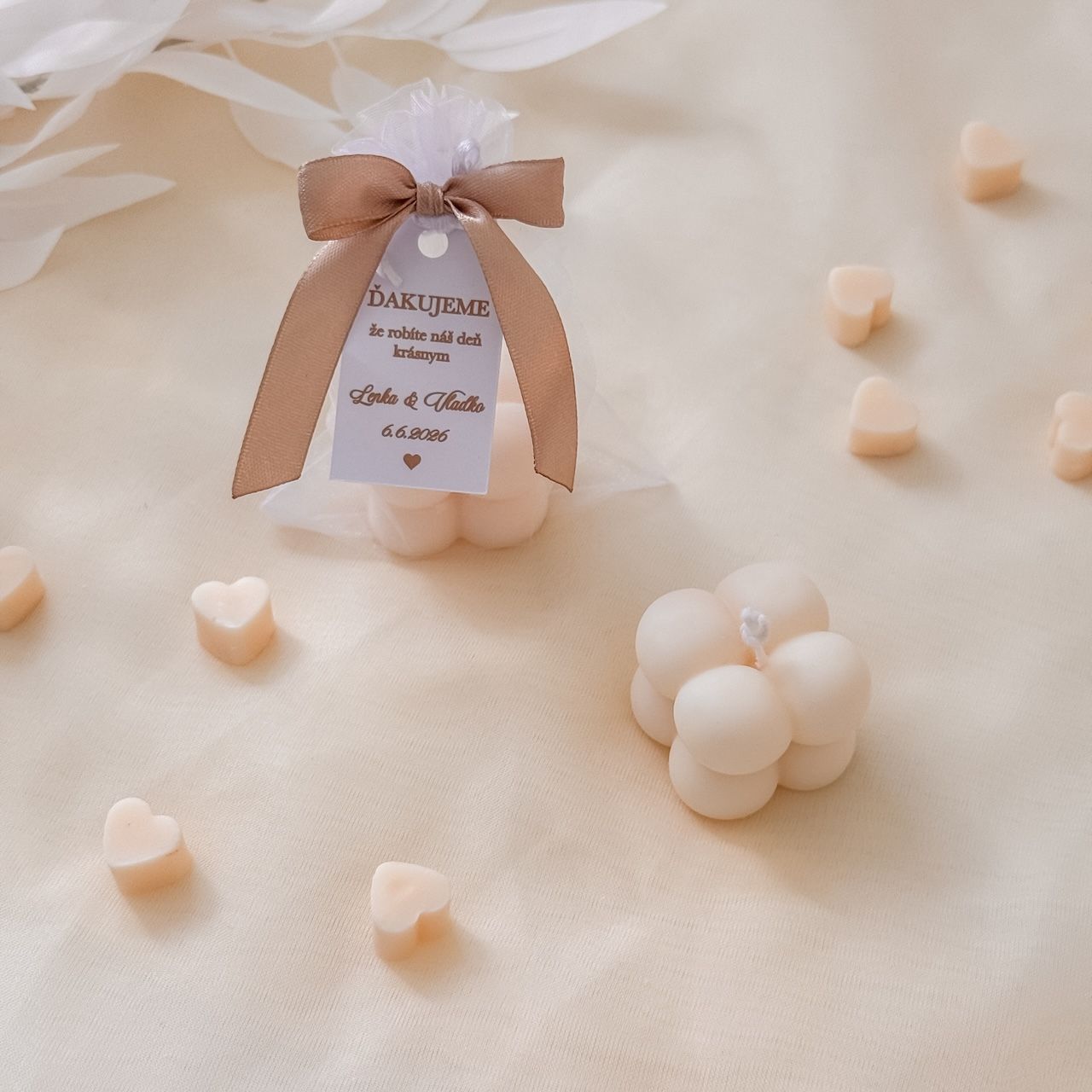 Darček pre svadobných hostí - sviečka bublinky vo vrecku