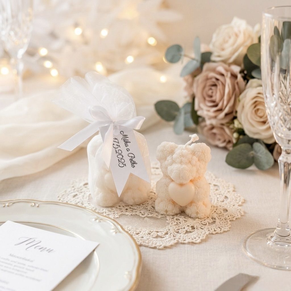 Tento darček pre svadobných hostí v podobe sójovej sviečky je prejavom vďaky, ktorý doslova rozžiari domovy vašich blízkych. Ručne odlievaný prírodný vosk v elegantnom balení s vašimi menami a dátumom svadby je nielen štýlovým doplnkom svadobného stola, ale aj trvácnou spomienkou na váš svadobný deň. Vďaka čistému horeniu sójového vosku a jemnej vôni je to darček, ktorý si hostia skutočne vychutnajú.