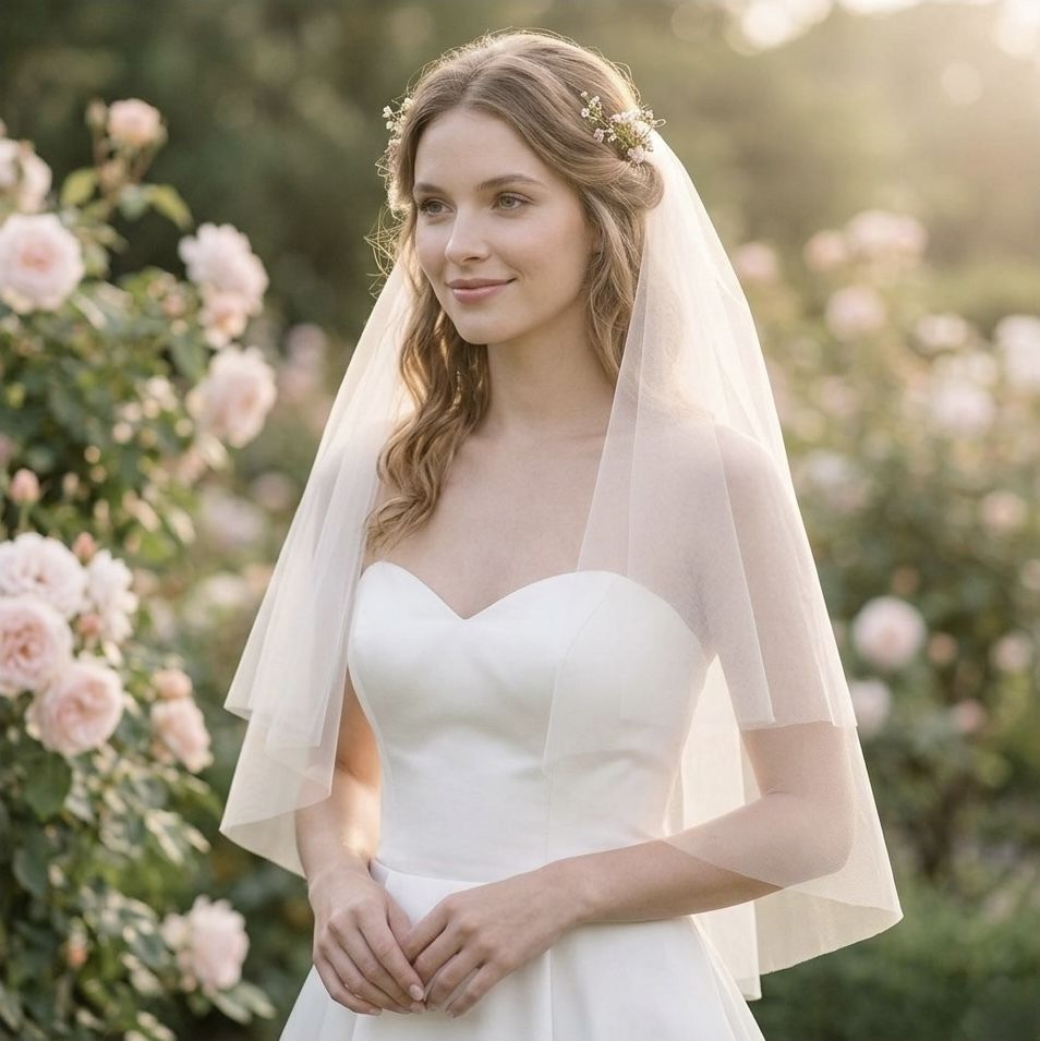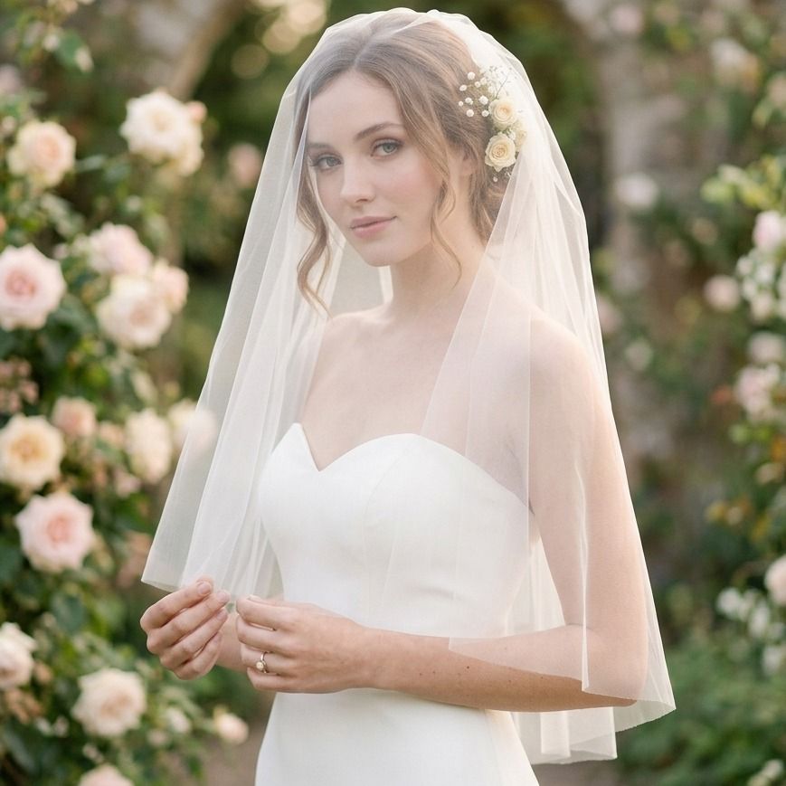 Štýlový krátky svadobný závoj, ktorý pôsobí ľahko, sviežo a moderne. Je skvelou voľbou pre nevesty, ktoré hľadajú praktický doplnok k svadobným šatám bez toho, aby zakrýval detaily ich zadnej časti. Jemný tyl a precízne spracovanie zabezpečia vaše pohodlie počas celého dňa.
