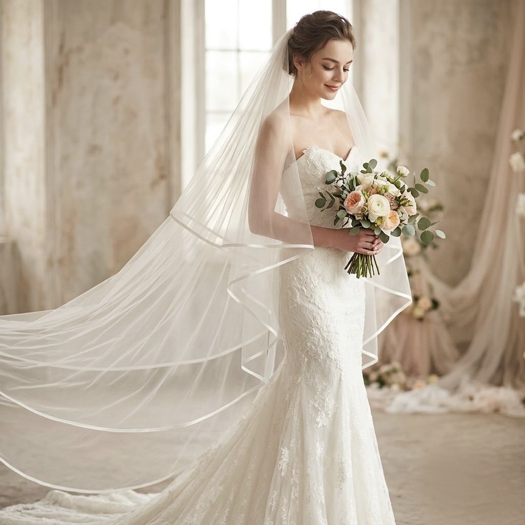 Luxusný dlhý svadobný závoj, ktorý vytvorí dychberúci efekt pri kráčaní k oltáru. Tento katedrálny závoj dodá vašej vizáži vznešenosť a eleganciu. Vyrobený z jemného tylu, krásne splýva a je ideálnym doplnkom pre nevesty, ktoré túžia po rozprávkovom svadobnom vzhľade.
