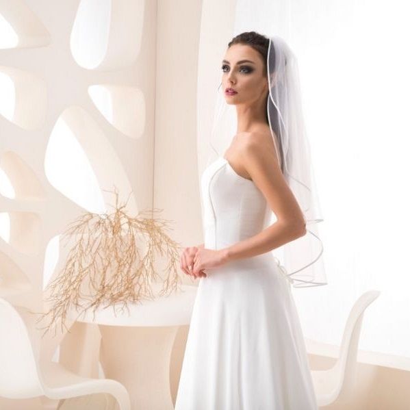 Jemný a elegantný svadobný závoj pre nevestu. Závoj je zdobený tenkým lemom. Skladá sa z dvoch vrstiev. Závoj je ukončený hrebienkom. Krásne splýva, je z mäkkého, kvalitného tylu.