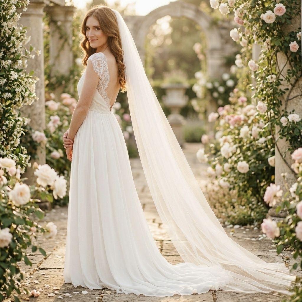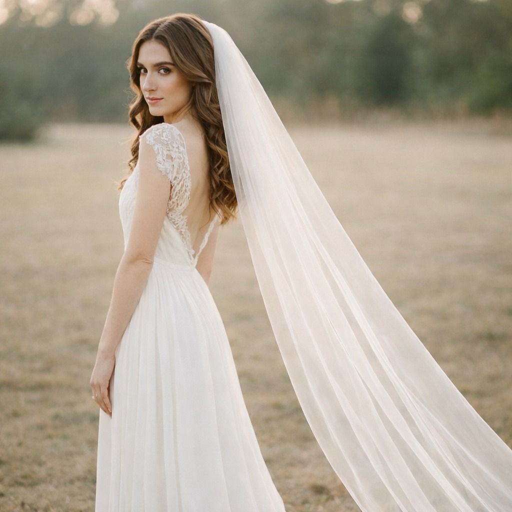 Luxusný dlhý svadobný závoj, ktorý vytvorí dychberúci efekt pri kráčaní k oltáru. Tento katedrálny závoj dodá vašej vizáži vznešenosť a eleganciu. Vyrobený z jemného tylu, krásne splýva a je ideálnym doplnkom pre nevesty, ktoré túžia po rozprávkovom svadobnom vzhľade.