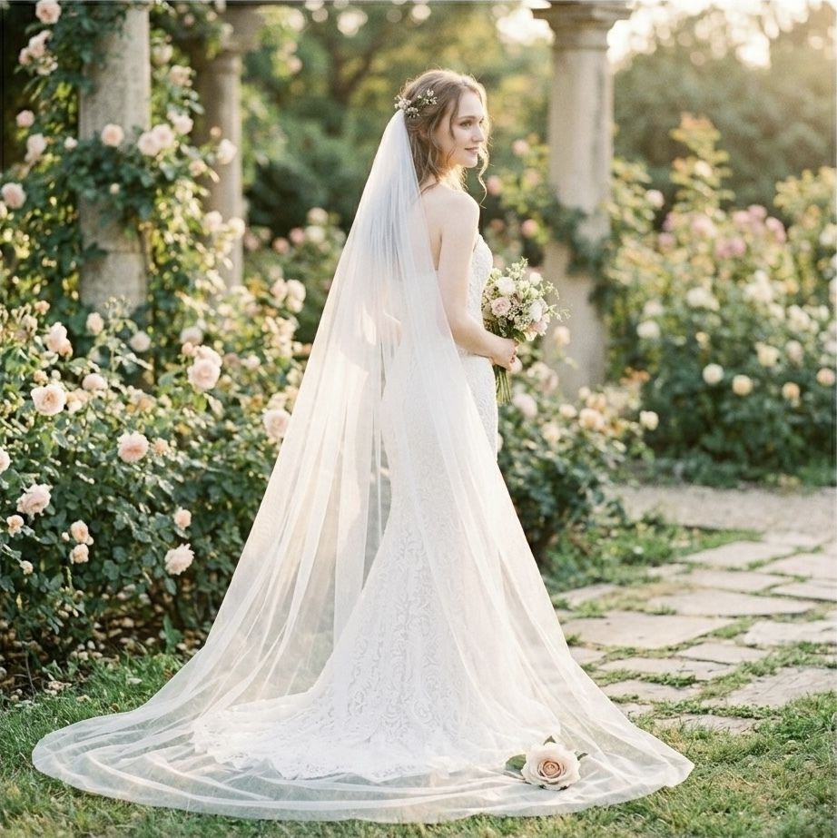Luxusný dlhý svadobný závoj, ktorý vytvorí dychberúci efekt pri kráčaní k oltáru. Tento katedrálny závoj dodá vašej vizáži vznešenosť a eleganciu. Vyrobený z jemného tylu, krásne splýva a je ideálnym doplnkom pre nevesty, ktoré túžia po rozprávkovom svadobnom vzhľade.