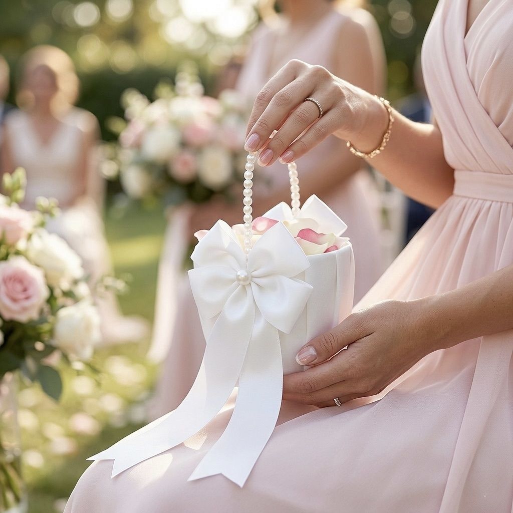 Naše svadobné košíky sú navrhnuté špeciálne pre družičky a malých pomocníkov, ktorí vás pri odchode z obradu zasypú lupienkami kvetov, ryžou alebo farebnými konfetami. Košík je ľahký, vkusne zdobený a presne padne do detských rúk, čím dodá celému momentu rozprávkový nádych.