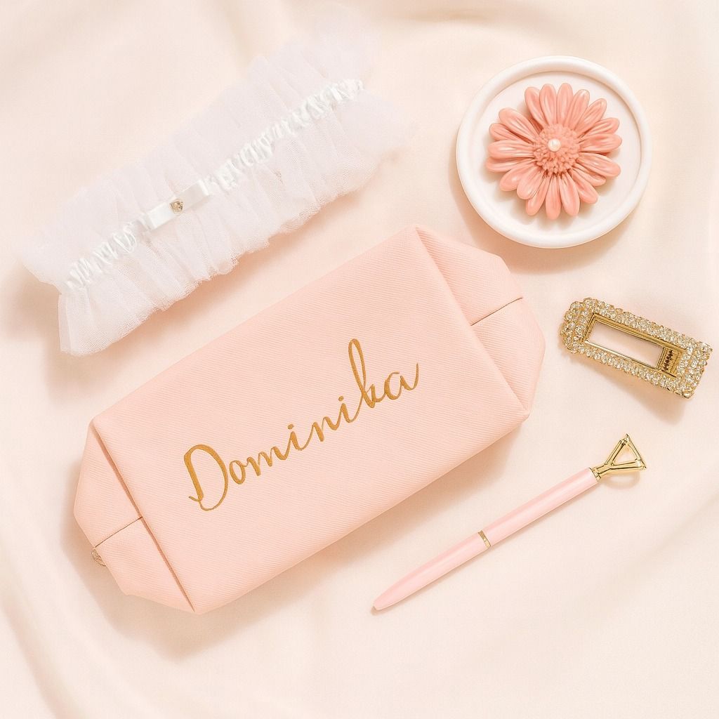 Vyskladaj si krabičku pre nevestu alebo družičku so sviečkou kozmetická taška s menom ružová na sklade 12,- €