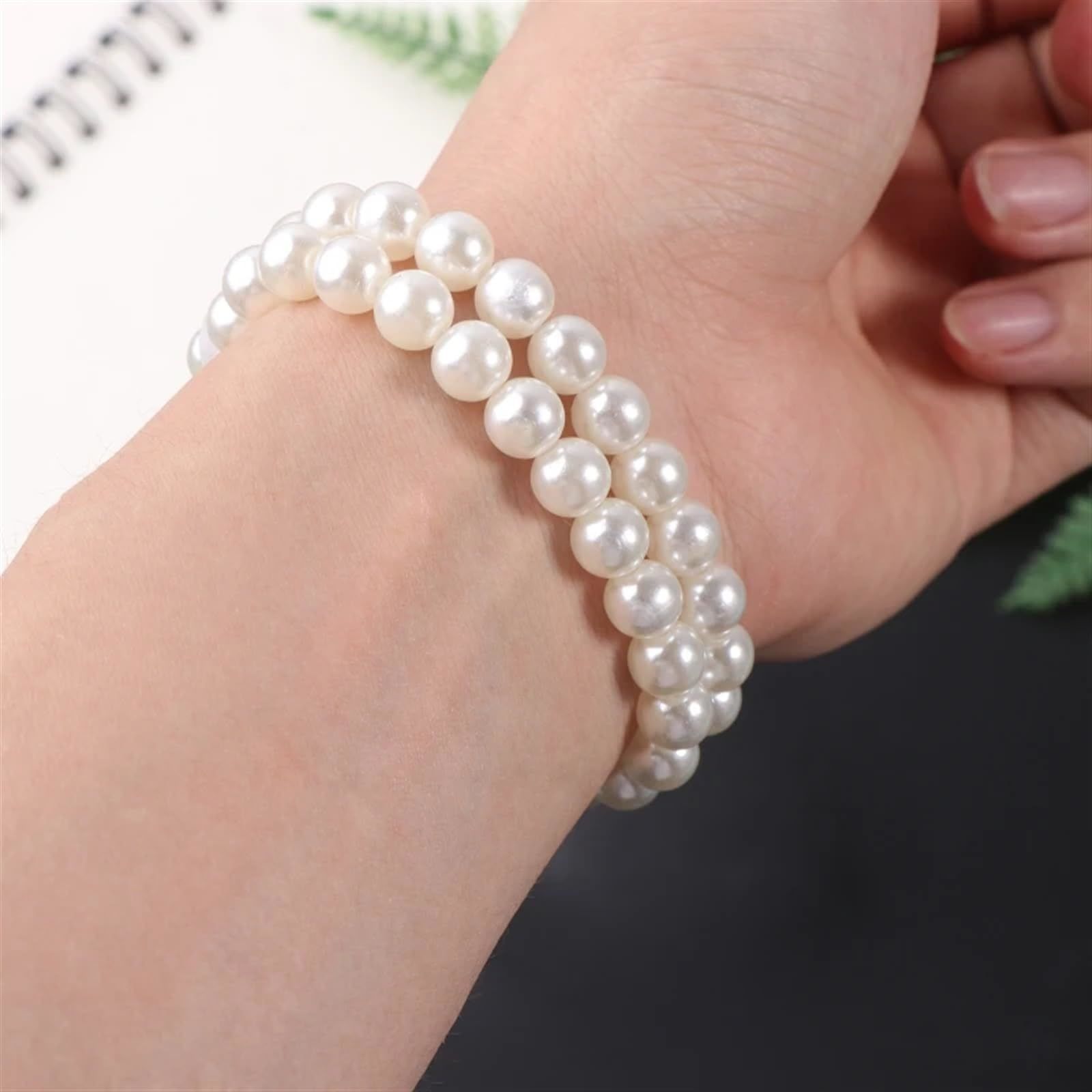 Časť náramku, ktorá je okolo zápästia je vyrobená z bielych perličiek.