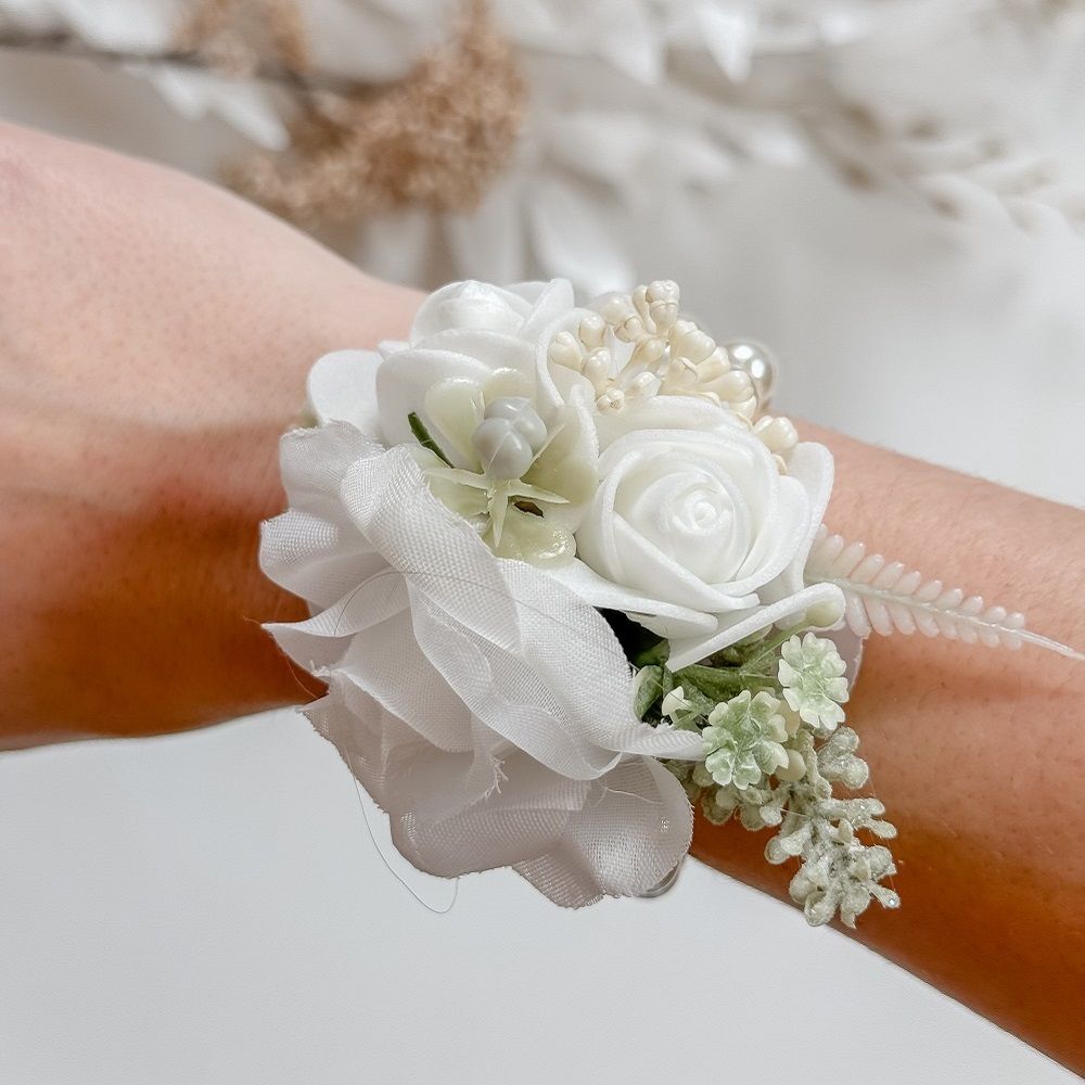 Krásne kvetinové náramky, s ktorými potešíte každú družičku. Náramky sú vyrobené z umelých kvetov a po svadbe budú peknou spomienkou.
