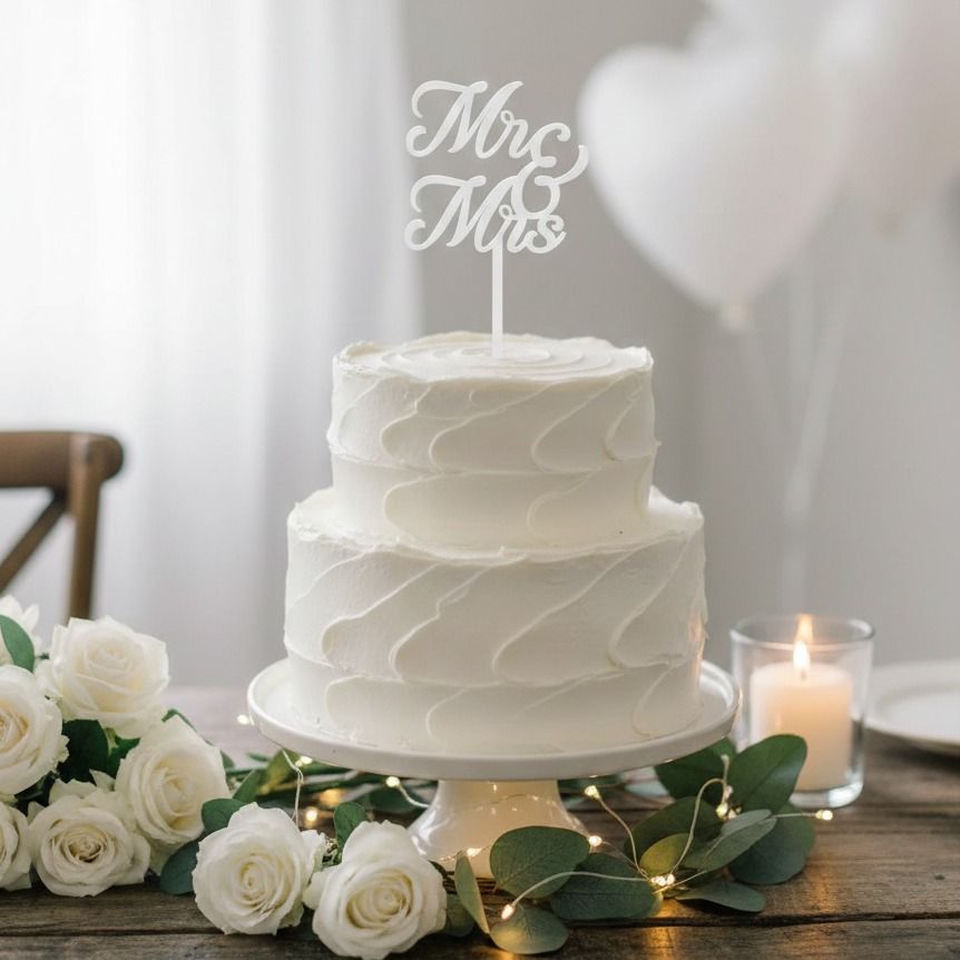 Akrylový zápich v bielej farbe. Zápich je tvorený nápisom Mr. & Mrs.
