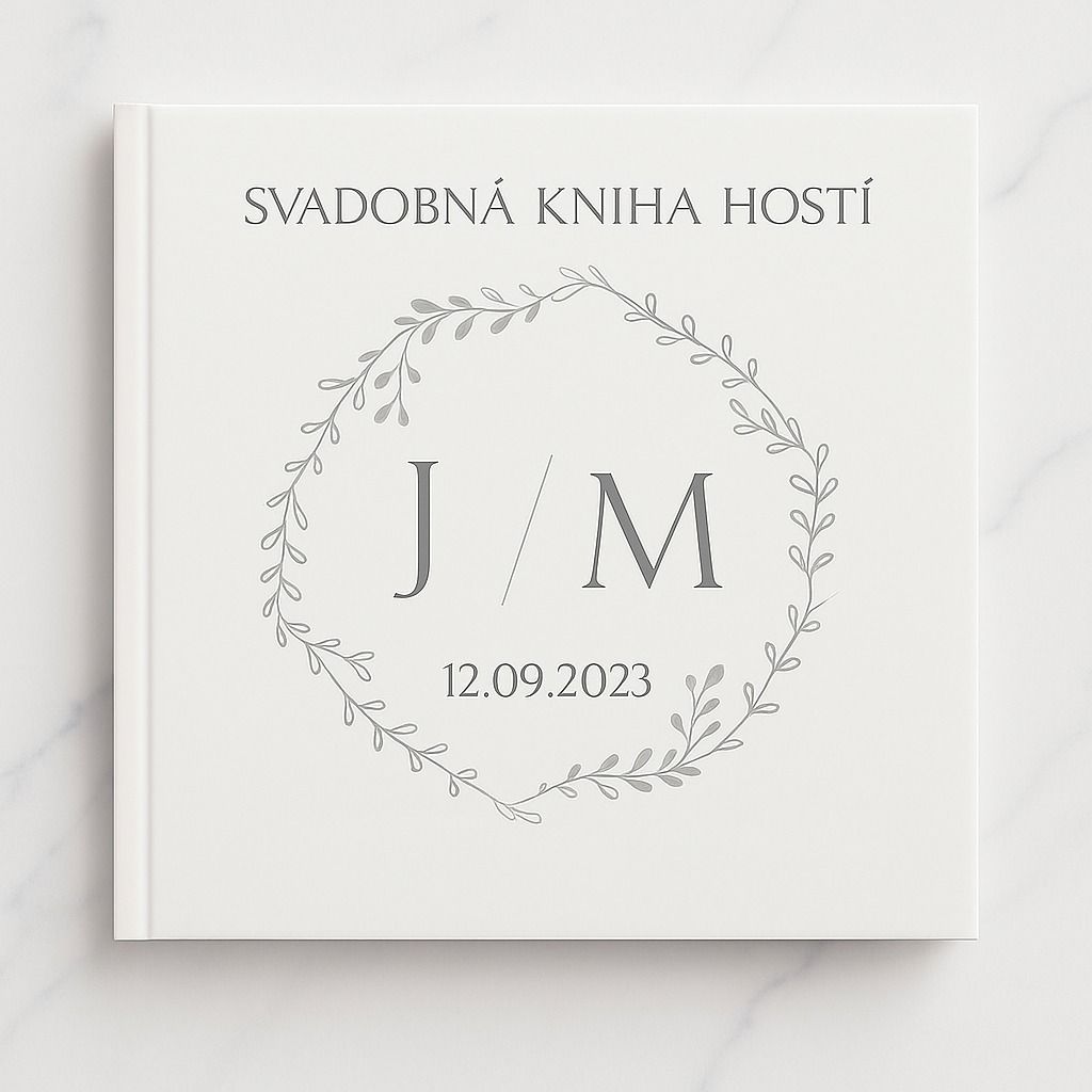 Jemná svadobná kniha hostí s pevným obalom a s vlastným textom. Na knihu hostí je možné napísať ľubovoľný text, napríklad mená, dátum svadby, slová svadobná kniha a iné.