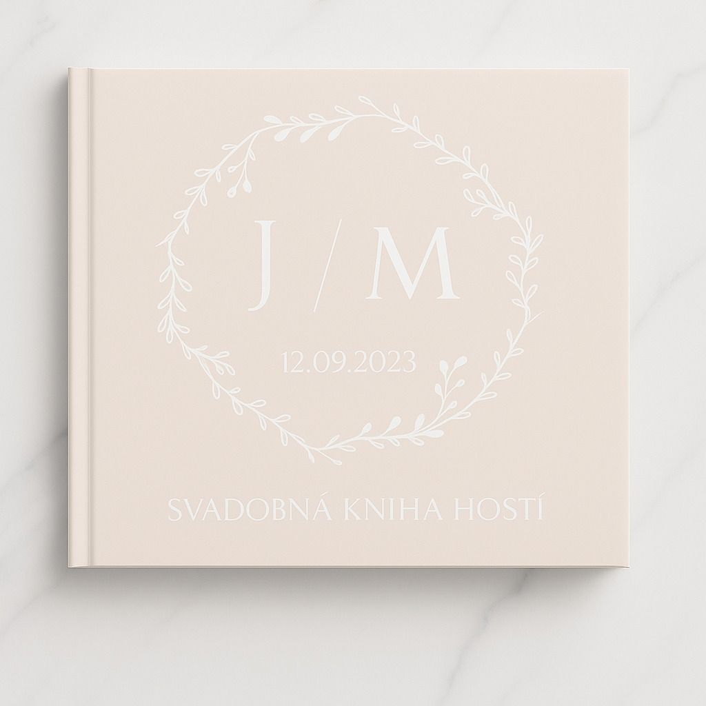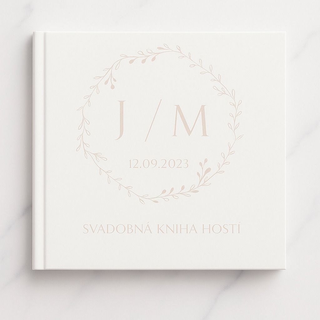 Jemná svadobná kniha hostí s pevným obalom a s vlastným textom. Na knihu hostí je možné napísať ľubovoľný text, napríklad mená, dátum svadby, slová svadobná kniha a iné.
