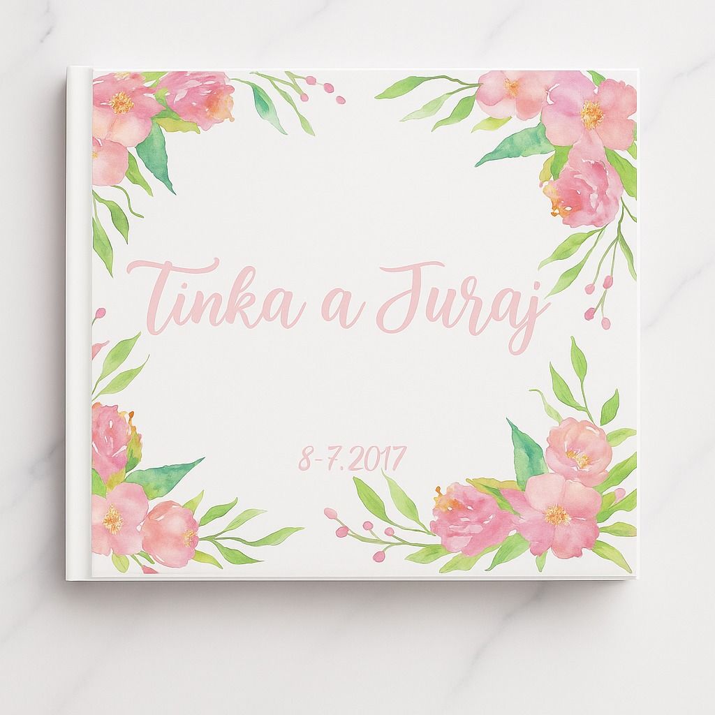 Jemná svadobná kniha hostí s pevným obalom a s vlastným textom. Na knihu hostí je možné napísať ľubovoľný text, napríklad mená, dátum svadby, slová svadobná kniha a iné.