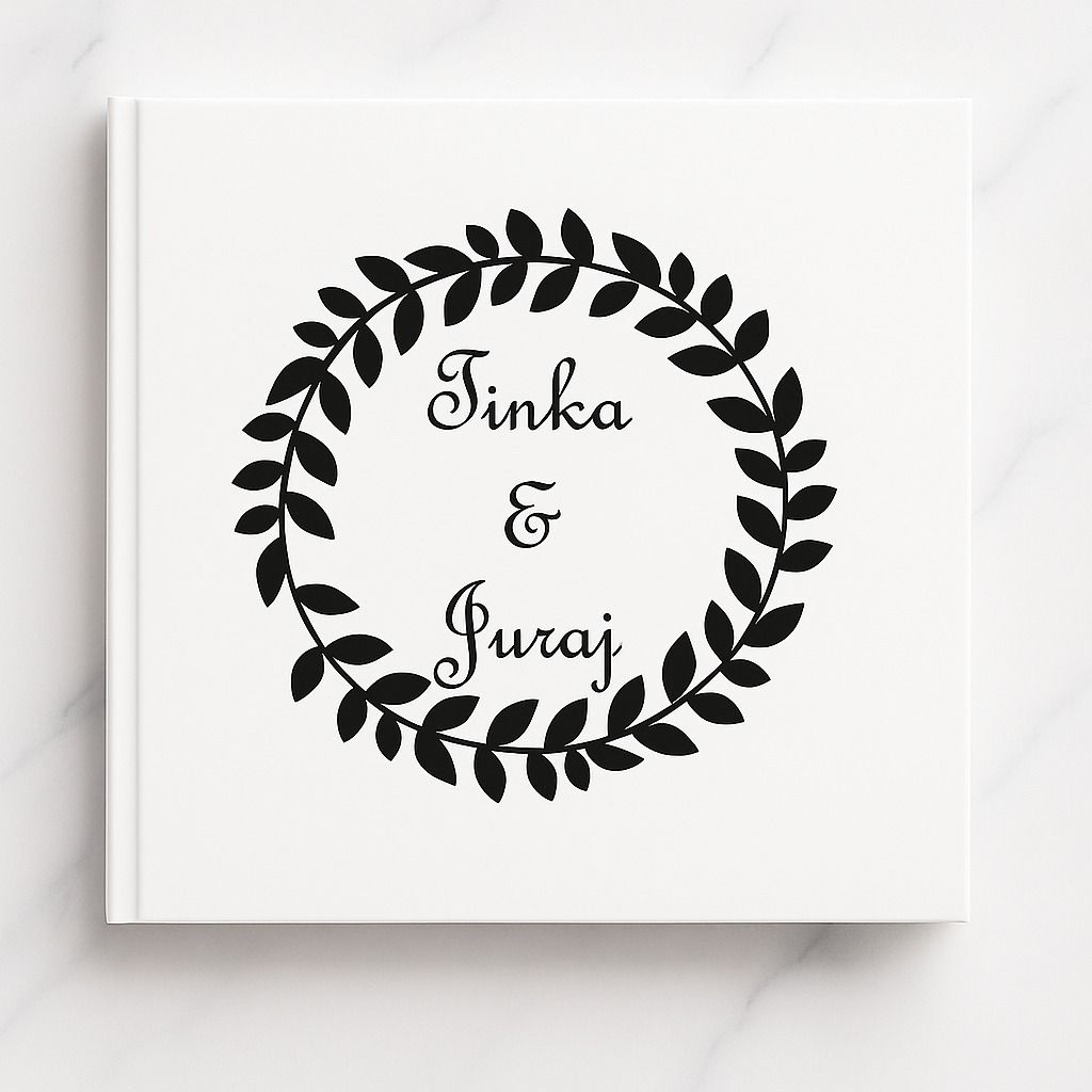 Jemná svadobná kniha hostí s pevným obalom a s vlastným textom. Na knihu hostí je možné napísať ľubovoľný text, napríklad mená, dátum svadby, slová svadobná kniha a iné.