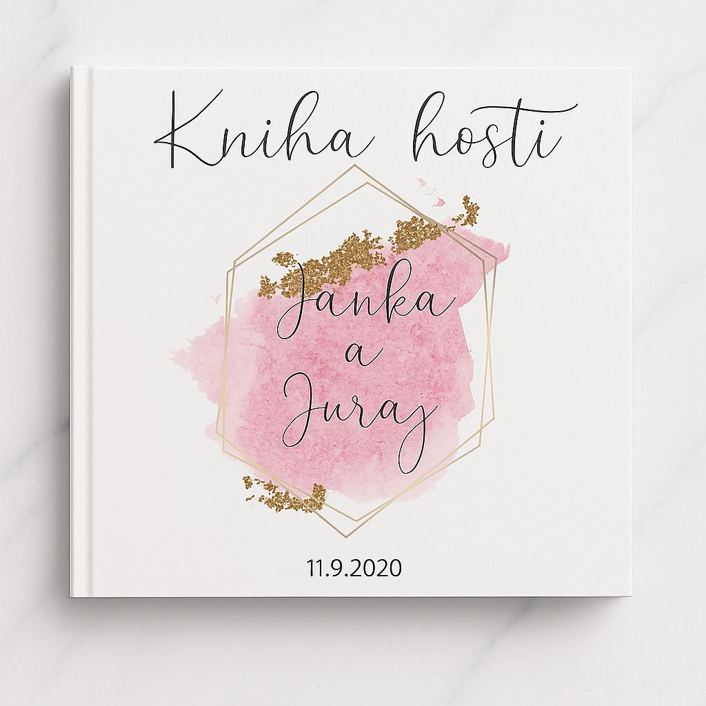 Jemná svadobná kniha hostí s pevným obalom a s vlastným textom. Na knihu hostí je možné napísať ľubovoľný text, napríklad mená, dátum svadby, slová svadobná kniha a iné.