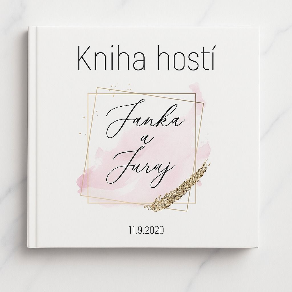 Jemná svadobná kniha hostí s pevným obalom a s vlastným textom. Na knihu hostí je možné napísať ľubovoľný text, napríklad mená, dátum svadby, slová svadobná kniha a iné.