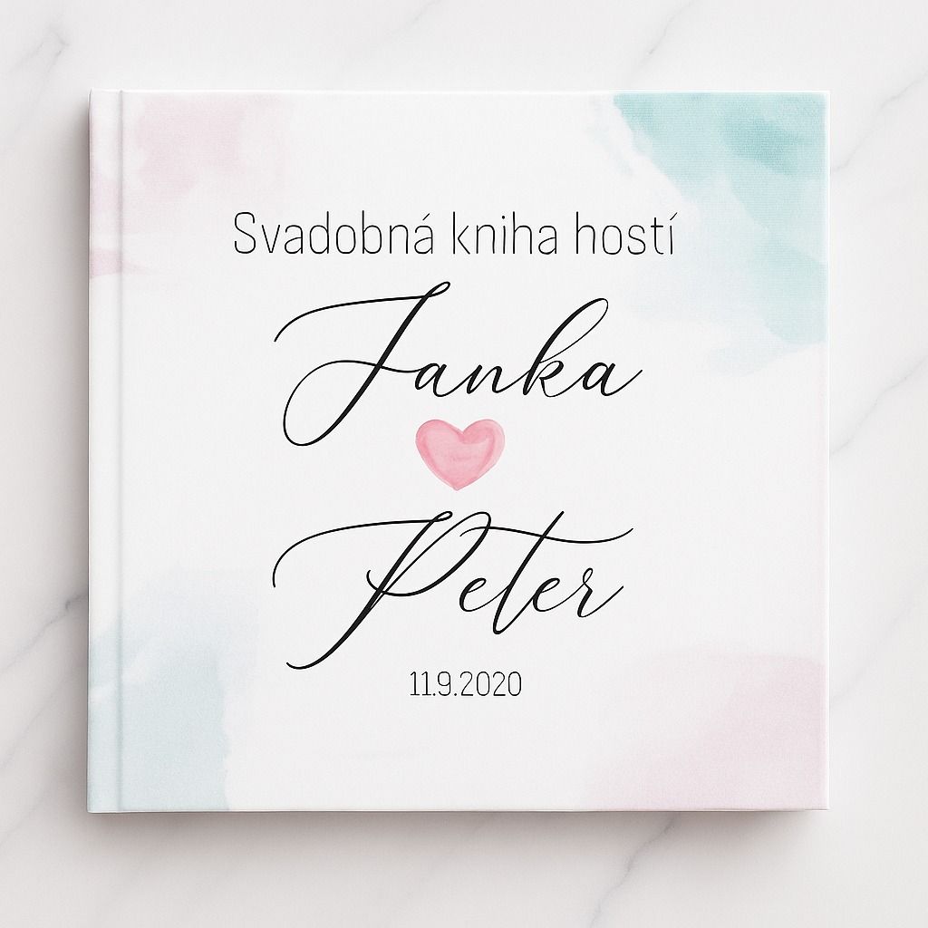 Jemná svadobná kniha hostí s pevným obalom a s vlastným textom. Na knihu hostí je možné napísať ľubovoľný text, napríklad mená, dátum svadby, slová svadobná kniha a iné.