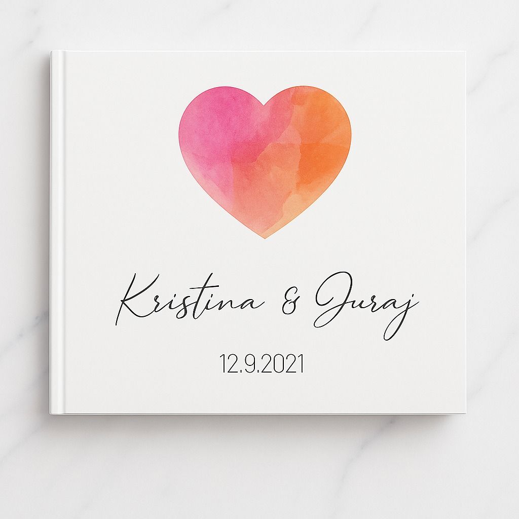 Jemná svadobná kniha hostí s pevným obalom a s vlastným textom. Na knihu hostí je možné napísať ľubovoľný text, napríklad mená, dátum svadby, slová svadobná kniha a iné.