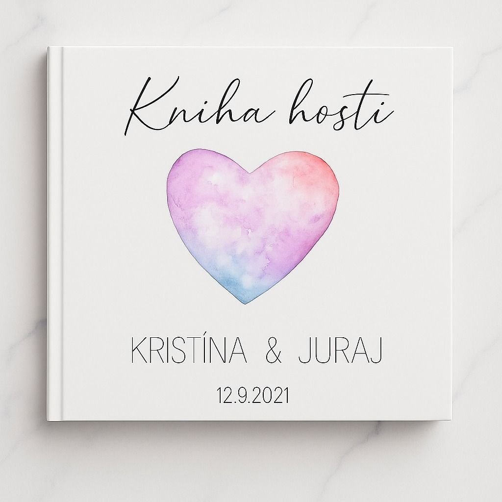 Jemná svadobná kniha hostí s pevným obalom a s vlastným textom. Na knihu hostí je možné napísať ľubovoľný text, napríklad mená, dátum svadby, slová svadobná kniha a iné.