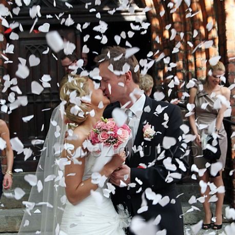 Biele vystreľovacie konfety na svadbu sú v tvare srdiečok vo veľkosti 3cm. Konfety vystrelia do výšky cca 5m a postupne padajú smerom k zemi. Tieto konfety sú vyrobené z ryžového papiera, preto sú ekologické.