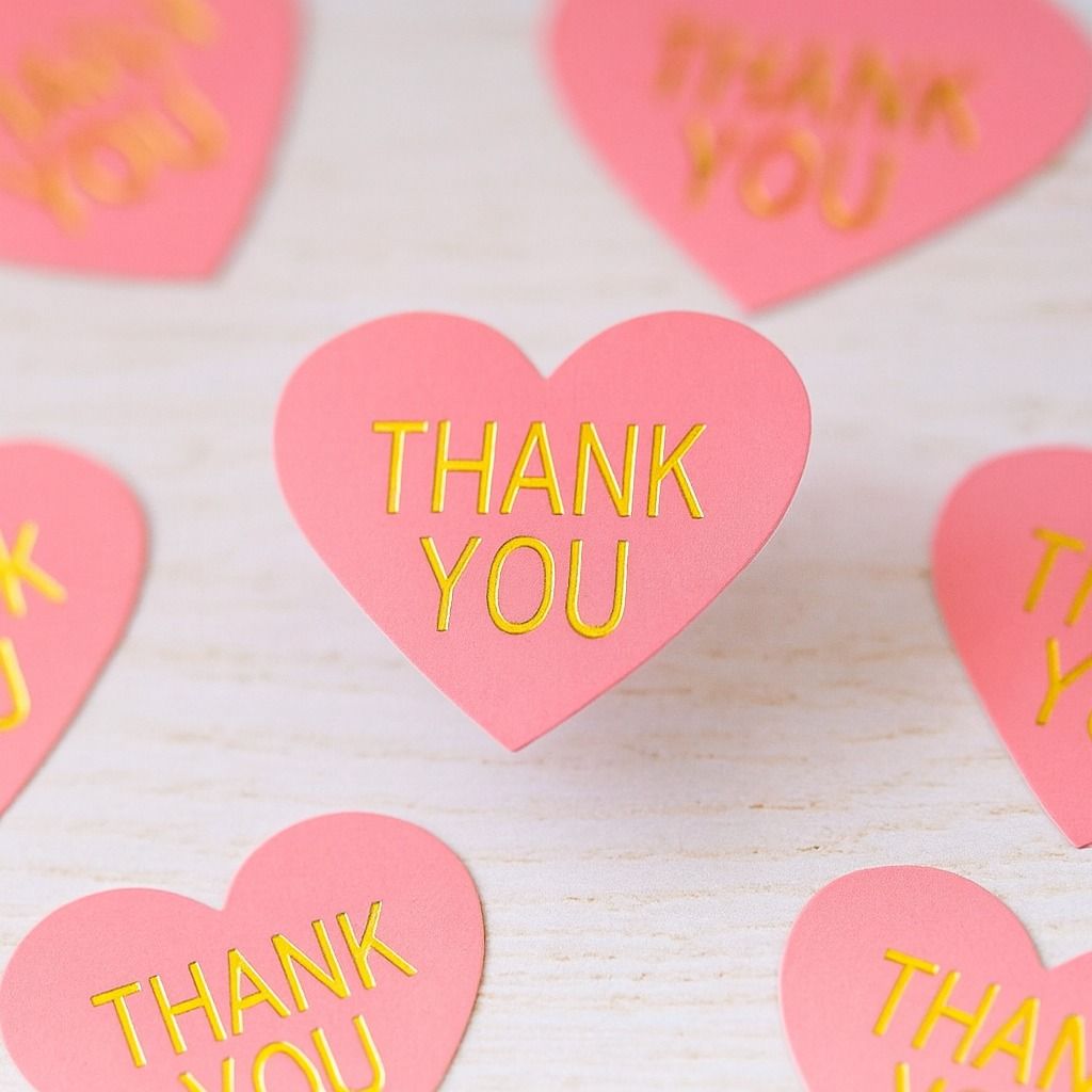 Nálepky Thank You 10 ks. Môžete ich použiť na darčeky pre hostí alebo na box na zákusky.