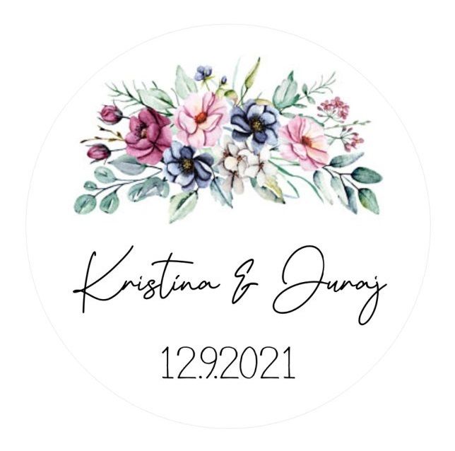 Svadobné nálepky s vlastným dizajnom. Dizajn nálepiek je potrebné zaslať mailom na info@svadbickovo.sk. Obrázok musí byť v dostatočnej kvalite.