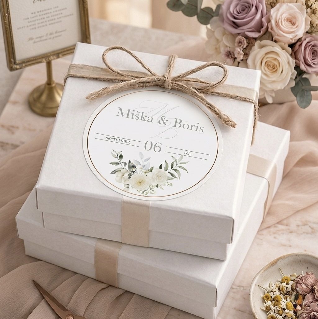 Detaily tvoria celok a naše svadobné nálepky sú toho dôkazom. Sú dokonalým spôsobom, ako dodať osobný rozmer vašim darčekom pre hostí, vrecúškam s mandľami alebo krabičkám na výslužky. V ponuke nájdete široký výber motívov – od romantických kvetov až po elegantný minimalizmus. Stačí pridať vaše mená a dátum svadby a jednoduché balenie sa okamžite premení na štýlovú pamiatku. Naše nálepky sú samolepiace, s kvalitnou tlačou a pripravené na okamžité použitie.