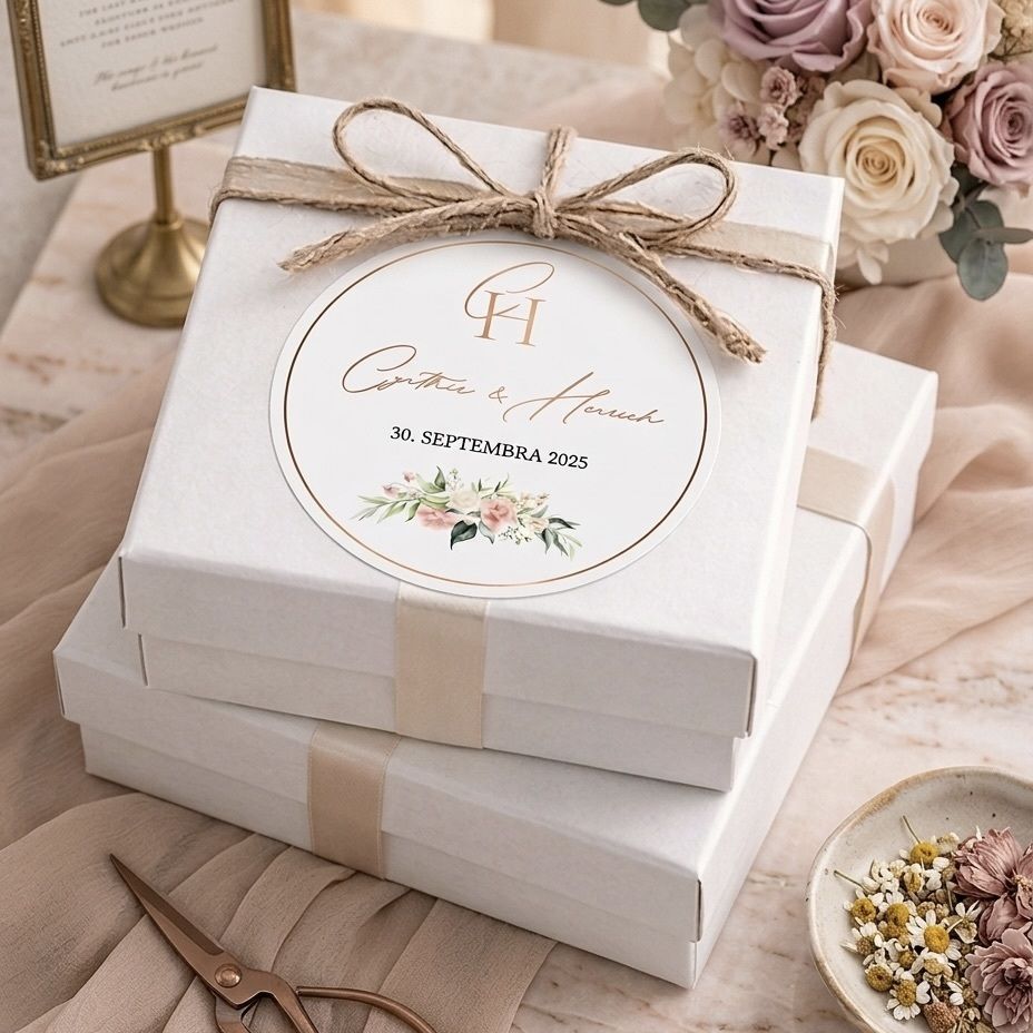 Detaily tvoria celok a naše svadobné nálepky sú toho dôkazom. Sú dokonalým spôsobom, ako dodať osobný rozmer vašim darčekom pre hostí, vrecúškam s mandľami alebo krabičkám na výslužky. V ponuke nájdete široký výber motívov – od romantických kvetov až po elegantný minimalizmus. Stačí pridať vaše mená a dátum svadby a jednoduché balenie sa okamžite premení na štýlovú pamiatku. Naše nálepky sú samolepiace, s kvalitnou tlačou a pripravené na okamžité použitie.