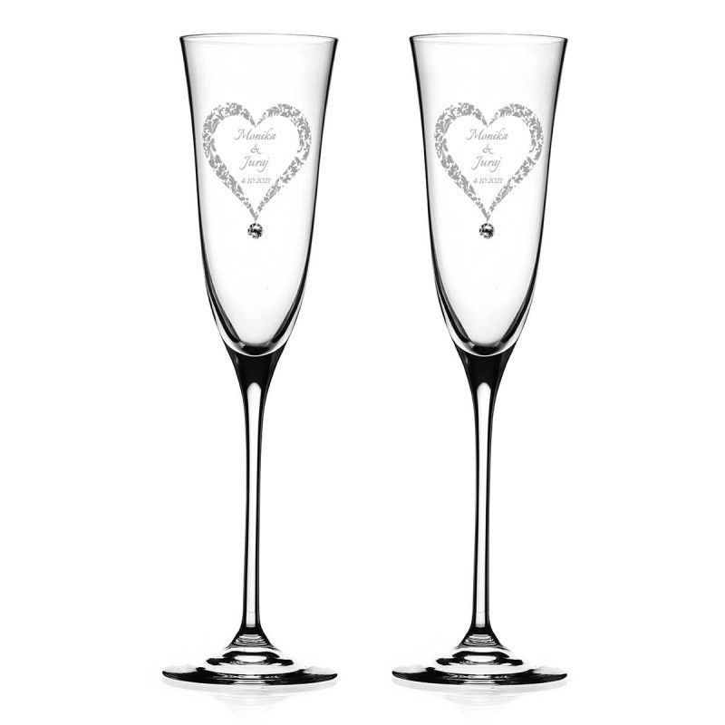 Pár ručne brúsených svadobných pohárov zdobenými so Swarovski Elements. Balené v elegantnej krabičke. Uvedená cena je za dva poháre vrátane krabičky.