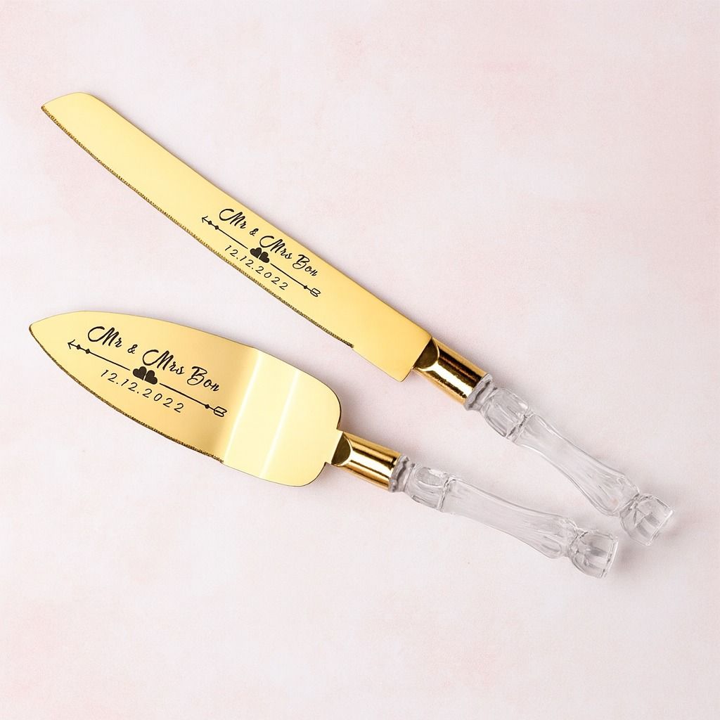 Set príboru na svadobnú tortu s personalizovaným textom je skvelým darčekom alebo spomienkou na svadobný deň.