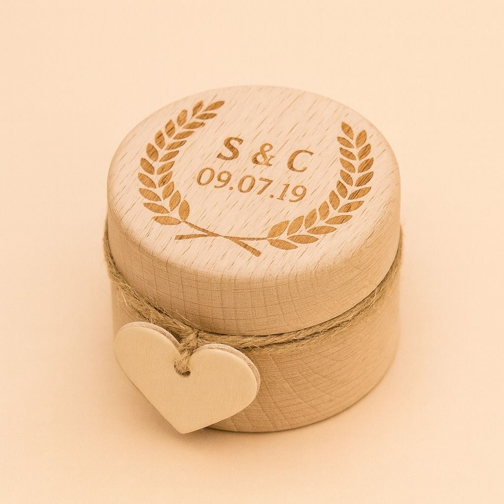 Drevená krabička na obrúčky s personalizovaným textom je peknou spomienkou na svadobný deň.